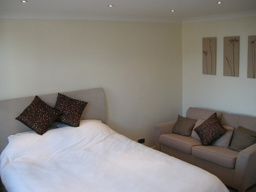 We have various beautifully decorated large double bedrooms available and several modern bathrooms. Each bedroom includes a wardrobe, study area and LCD television with DVD player, as well as free WiFi, Facetime and Skype access. We have a large collection of English books and films for your use.